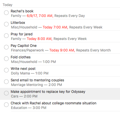 Appalled at how much of our day was taken up with negative thinking about ourselves, we decided to make this a best practice for the end of our days.  We spent time each evening before we closed our eyes to sleep asking each other this question, “What did you do right today?”  Instead of only beginning our days (which I do as you can see from the picture above…it’s my actual current list for the day I write this) with a to-do list, we ended our days with a “ta-da list.”